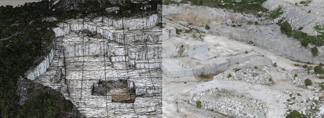 By positioning and processing the captured photographs, a 3D photogrammetric model of the terrain is obtained (Picture 4). Three-dimensional terrain models not only provide insight into the current state of mining operations but are also visually appealing and more informative compared to traditional 2D terrain representations.