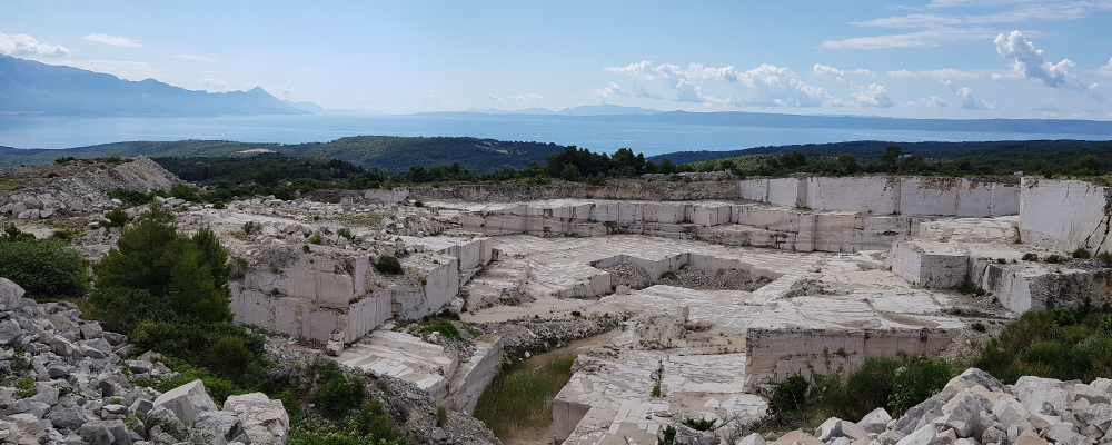 The exploitation field of architectural-construction stone “Selca” is located in the eastern part of the island of Brač, north of the settlement of Novo Selo, approximately 1 km away. The exploitation field encompasses two deposits, “Glave” and “Glave – West”. The terrain of the “Glave” and “Glave – West” deposits is morphologically hilly, with elevations ranging from 235 meters above sea level to 270 meters above sea level. The surface of the terrain is bare, with surface karstification and some maquis vegetation. The deposit is characterized by meter-scale layering of the rock mass (sometimes separated by fractures), and measured and exposed bedding planes with a dip of 60/8.