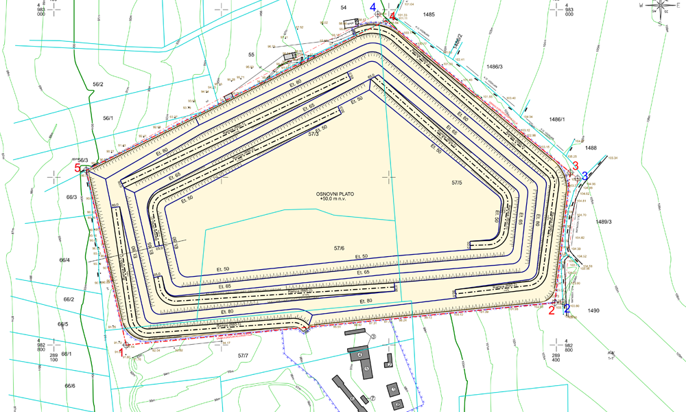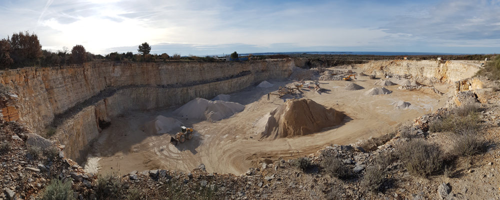 The exploitation field of technical-construction stone “Tambura” is located in the southern part of the Istrian peninsula, about 3 km from its western coast. The surface mine “Tambura” is approximately 277 meters wide and about 184 meters long. The lowest point of the mine before the implementation of project solutions is +80 meters above sea level (base plateau), and the highest point of the mine is 104 meters above sea level, representing a height difference of 24 meters. The general characteristics of the deposit are: a horizontal to subhorizontal layer position and the absence of significant tectonic impact. The subhorizontal layers have a gentle slope (about 5°).